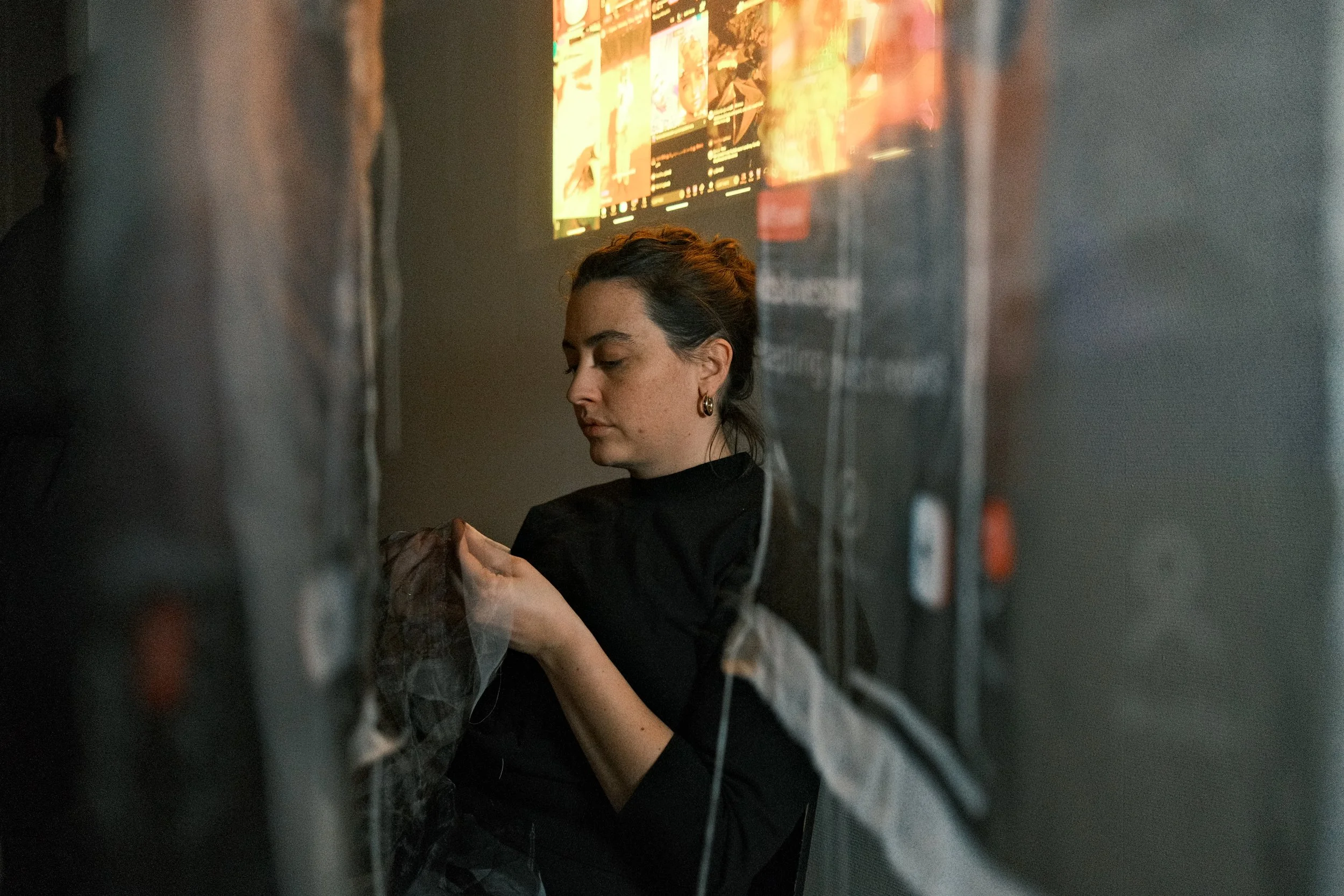 As part of the install, I incorporated a performance element, embellishing textile imagery sourced from TikTok Live while streaming on the platform itself, further entangling my own presence with the digital realities — and non-realities — I investigate.